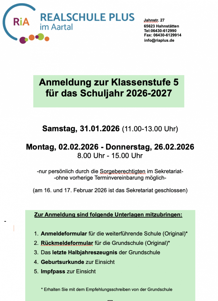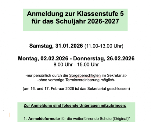 * Erhalten Sie mit dem Empfehlungsschreiben von der Grundschule