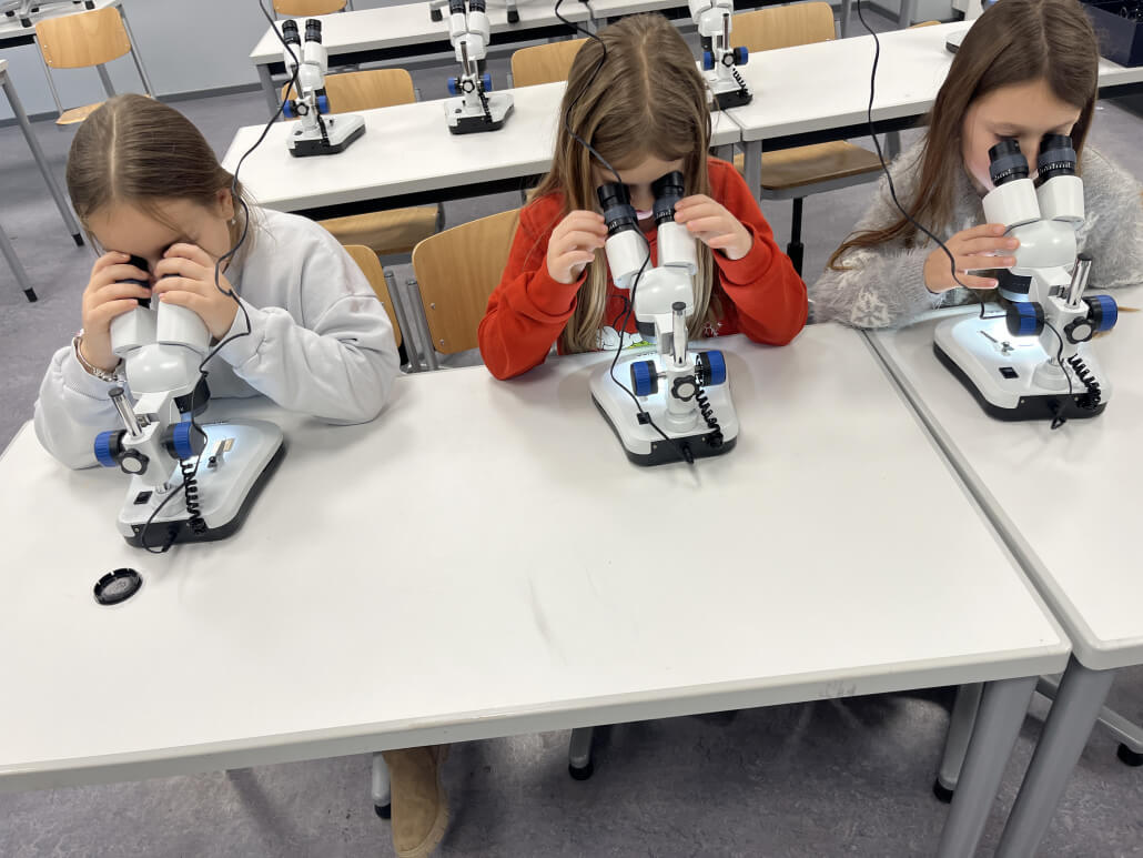In kleineren Gruppen wurde mit Lego-Education gebaut, fleißig mikroskopiert, leckere Rezepte in der Küche ausprobiert oder mit dem Tablet und dem Greenscreen gearbeitet.