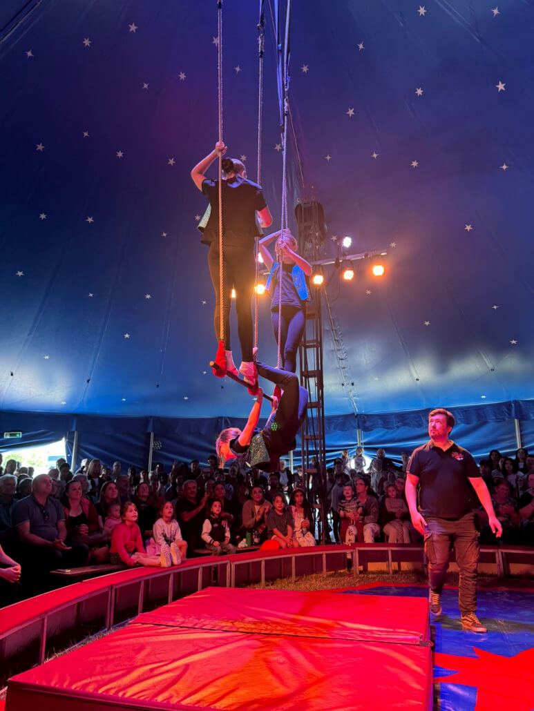 Am Freitag fand die Generalprobe statt, bei der alle Darbietungen noch einmal geübt und perfektioniert wurden. Die Aufregung stieg, denn am Samstag war es endlich soweit: In einem großen Zirkuszelt auf dem Schulgelände präsentierten die jungen Künstlerinnen und Künstler ihre einstudierten Nummern bei zwei Aufführungen vor Eltern, Geschwistern, Großeltern und vielen weiteren Gästen. Die Zuschauerinnen und Zuschauer waren begeistert von den mutigen Akrobatiknummern, den verblüffenden Zaubertricks und den schwebenden Trapezkünsten.