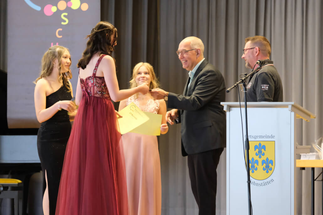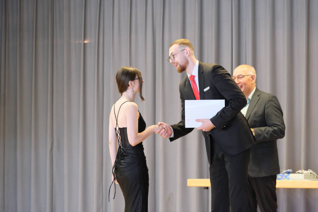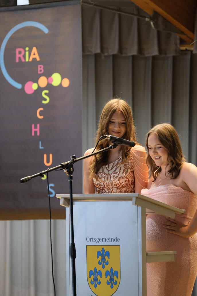 Eröffnet wurde die Feier durch ein gefühlvolles Klavierspiel von Patricia Meli, das sofort für eine festliche und zugleich persönliche Atmosphäre sorgte. Im Anschluss führten die Schülerinnen Summer Maciol und Kiara Hölz souverän und charmant durch das weitere Programm.