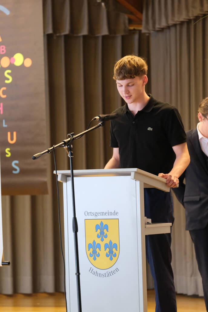Auch Lars Denninghoff, Bürgermeister der Verbandsgemeinde Aar-Einrich, wandte sich in einem Grußwort an die jungen Absolventinnen und Absolventen. Er lobte den Schulabschluss als einen bedeutenden Erfolg und riet den Jugendlichen, stets neugierig zu bleiben und nicht nur auf Noten zu schauen: „Jeder Mensch ist einzigartig.“ Gleichzeitig appellierte er an die jungen Menschen, sich aktiv in die Gesellschaft einzubringen und ihre Zukunft mutig zu gestalten.